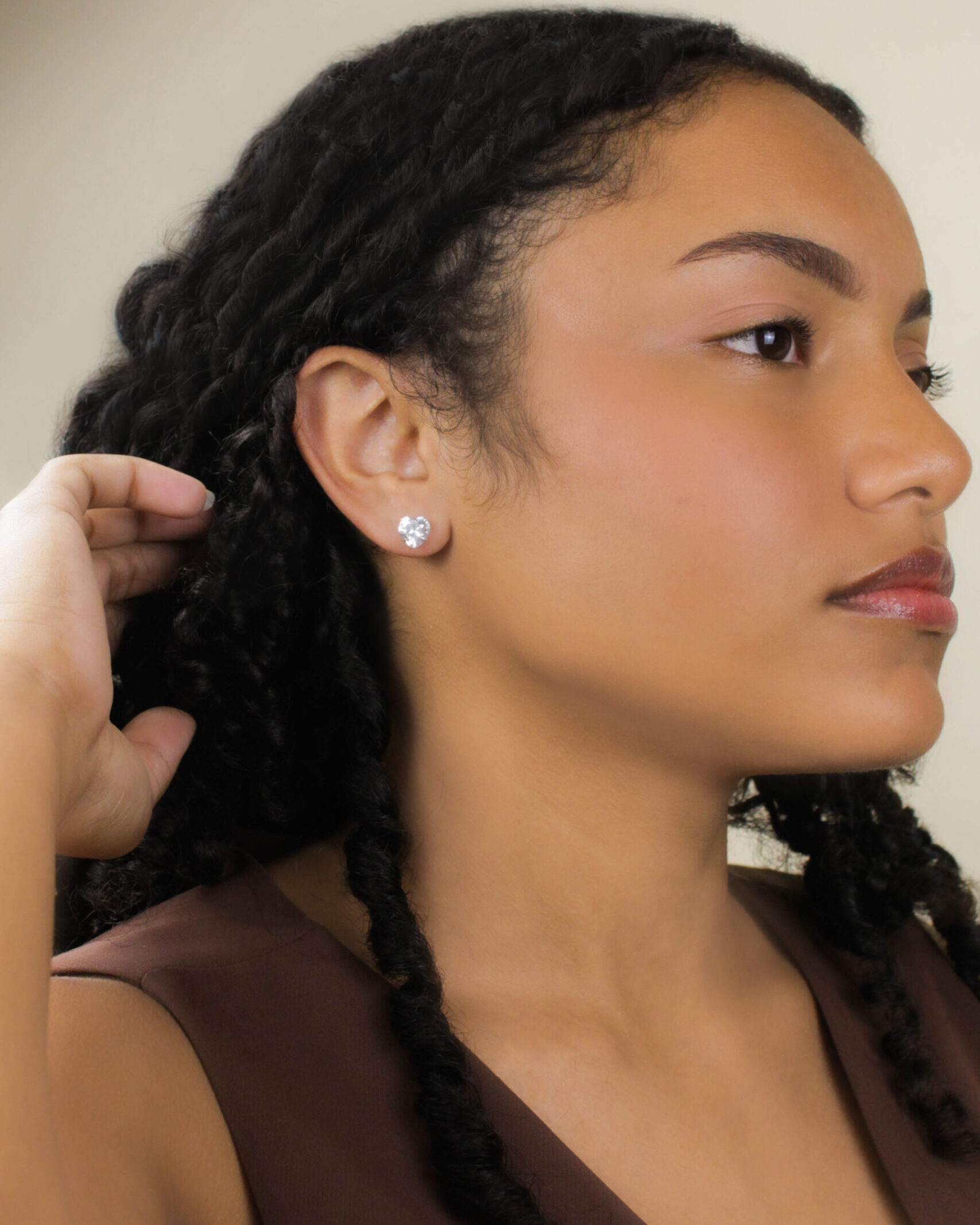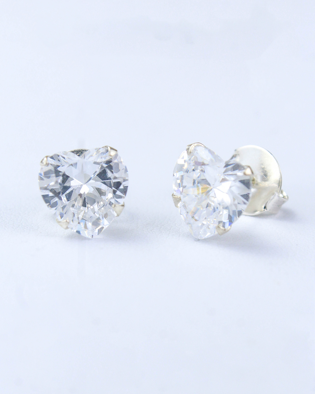 Par de brincos de prata 925 com pedra coração de 10 mm de largura em cravação simples.