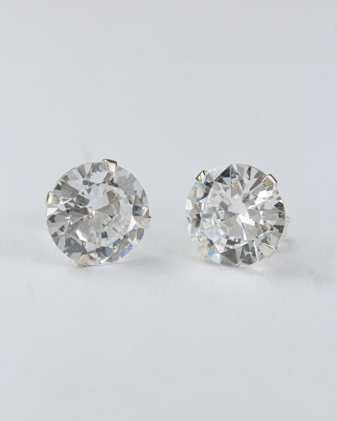 Par de brincos de prata 925 com pedra redonda de 12 mm de largura em cravação simples.